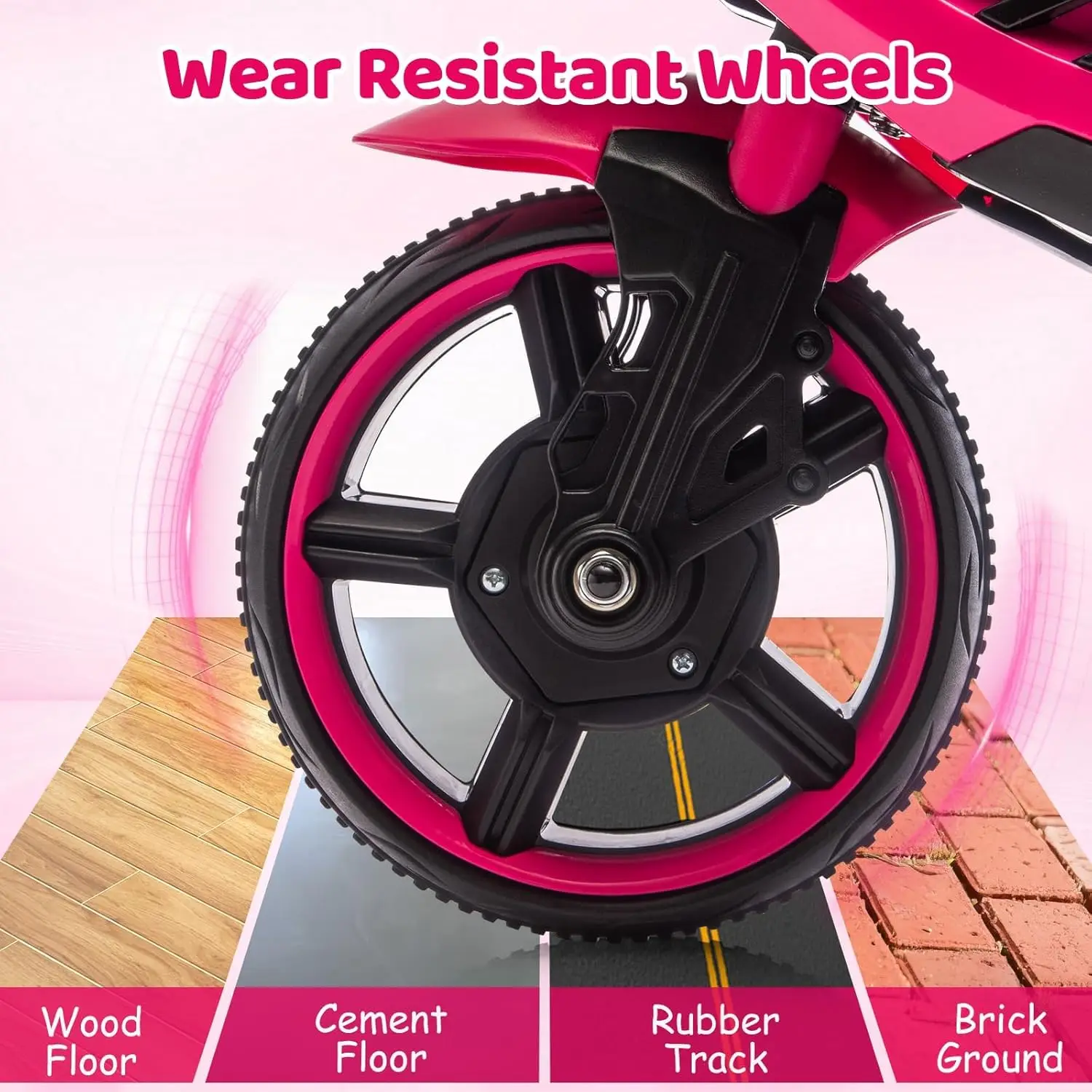 Efectos interactivos de luz y sonido: Equipado con un faro funcional brillante, el juguete de encendido garantiza una visibilidad clara.Los auténticos sonidos del motor, una bocina divertida y una alegre música de fondo de una motocicleta para niños de 6 V crean una aventura de conducción totalmente inmersiva para su hijo.