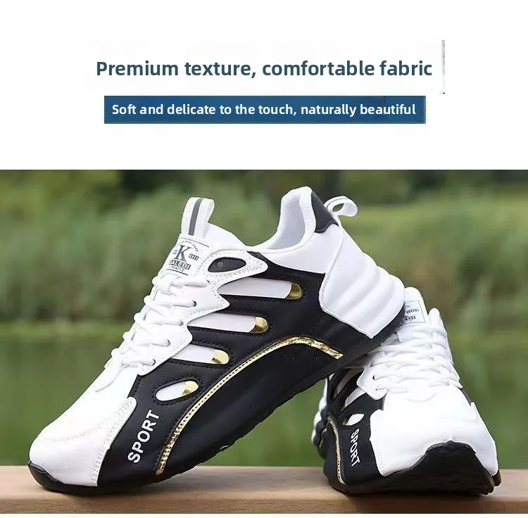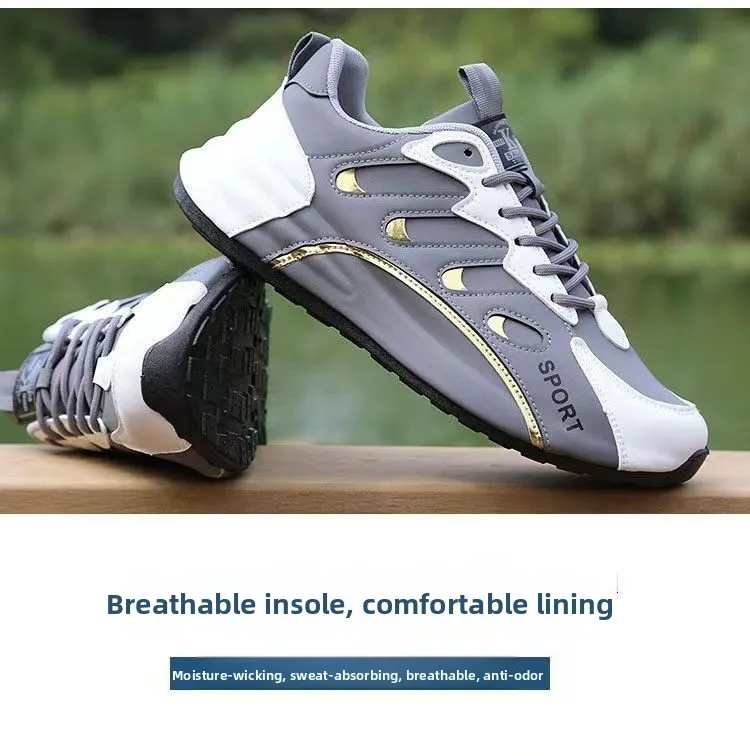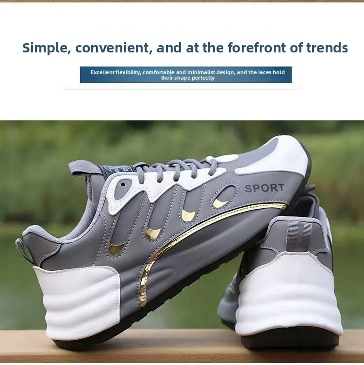 Zapatos deportivos ligeros con superficie de cuero para hombre,