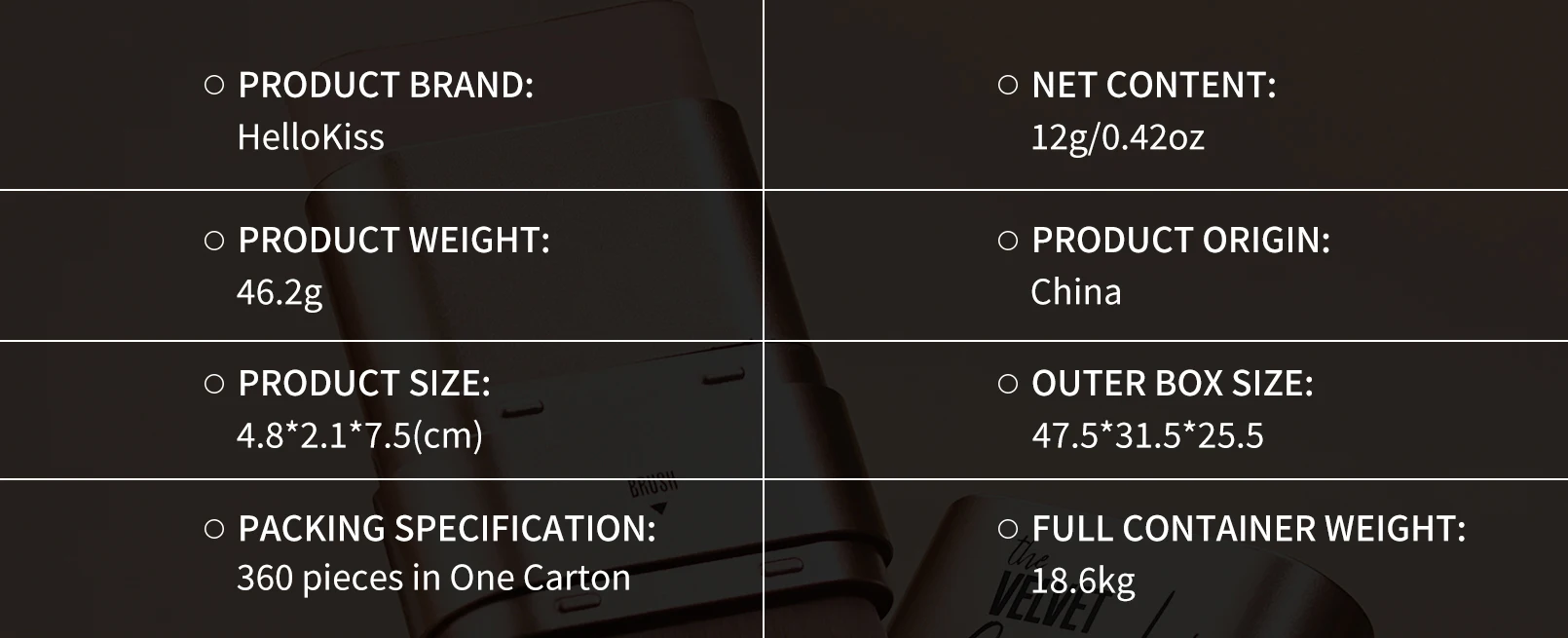 Peso neto: 12g