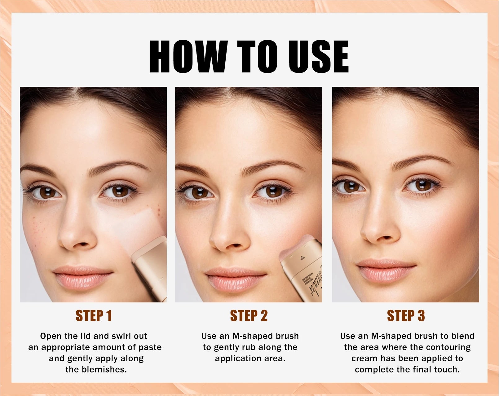 Paso 3. Utilice una brocha en forma de M para difuminar el área donde se ha aplicado la crema de contorno para completar el toque final.