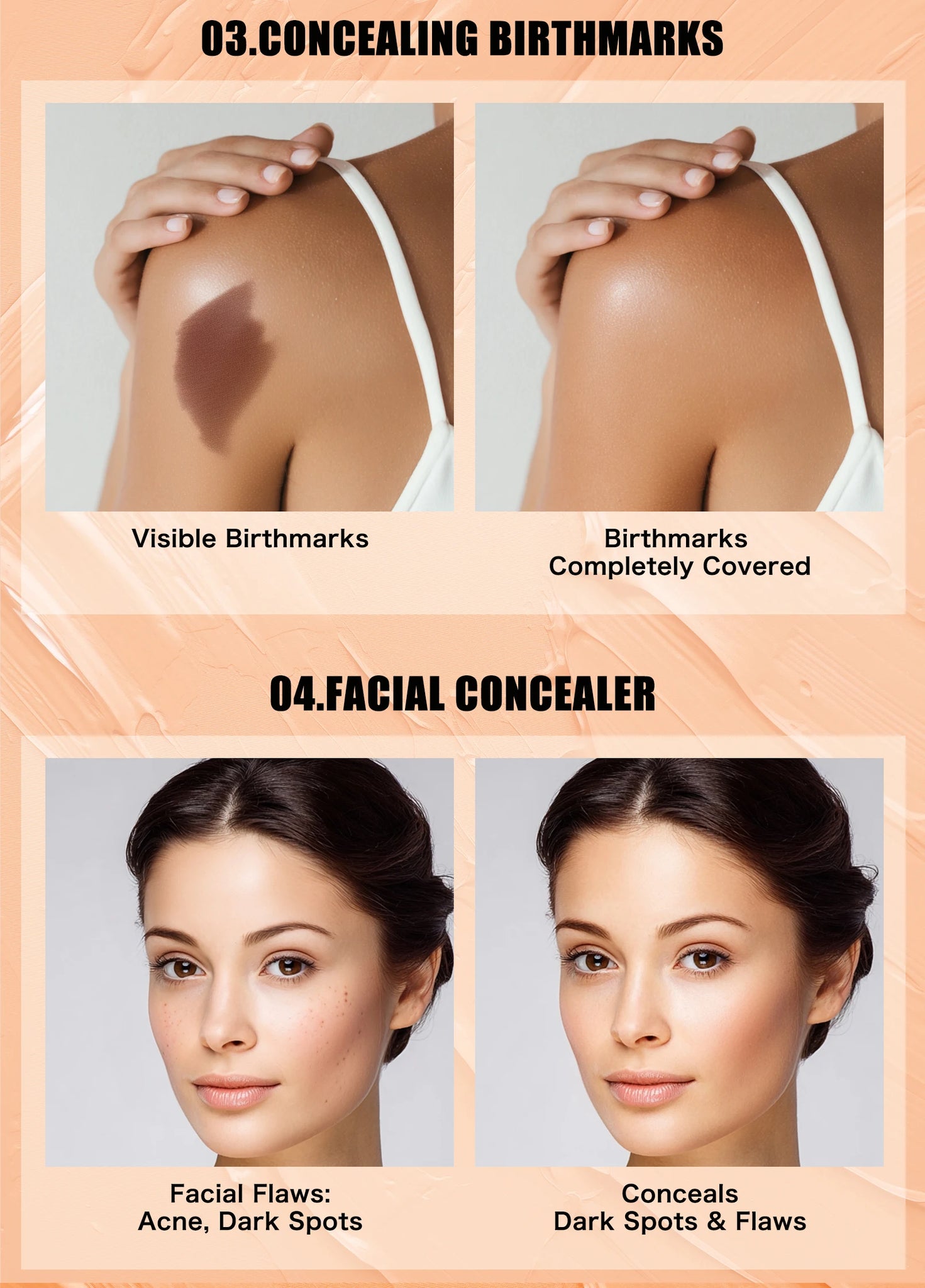 04.corretivo facial: defectos faciales: acné, manchas oscuras, oculta manchas oscuras y defectos